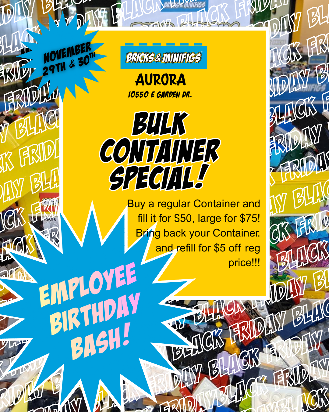 Stop by this holiday season for our new weekly deals! Every Monday & Thursday ~ 25% OFF bulk prices! Also Every Wednesday get 10% off any Used Pre-built Set! Time for those holiday savings and most excellent gifts for your loved ones. Only at BAM Aurora!