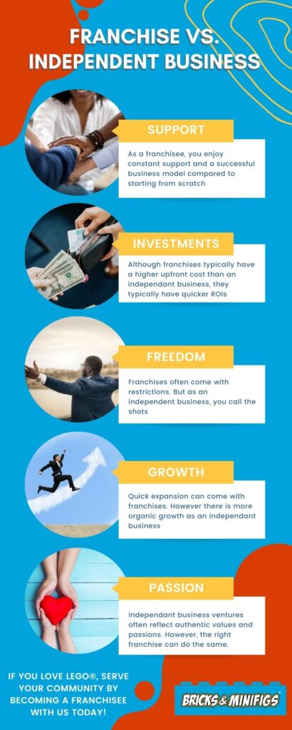 Starting your own business can be an exhilarating journey full of rewards and challenges. But where do you start? Is it better to forge your path as an independent business or take the franchise route? Today, our team at Bricks & Minifigs will compare the pros and cons of each choice.