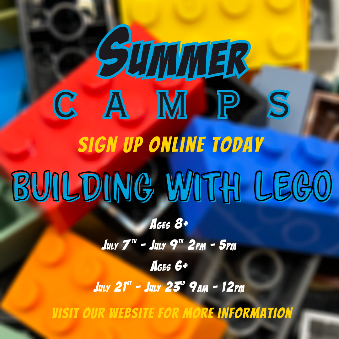 Building Camp: Multiple sessions available. During this camp your child will create, build, play games, and race.