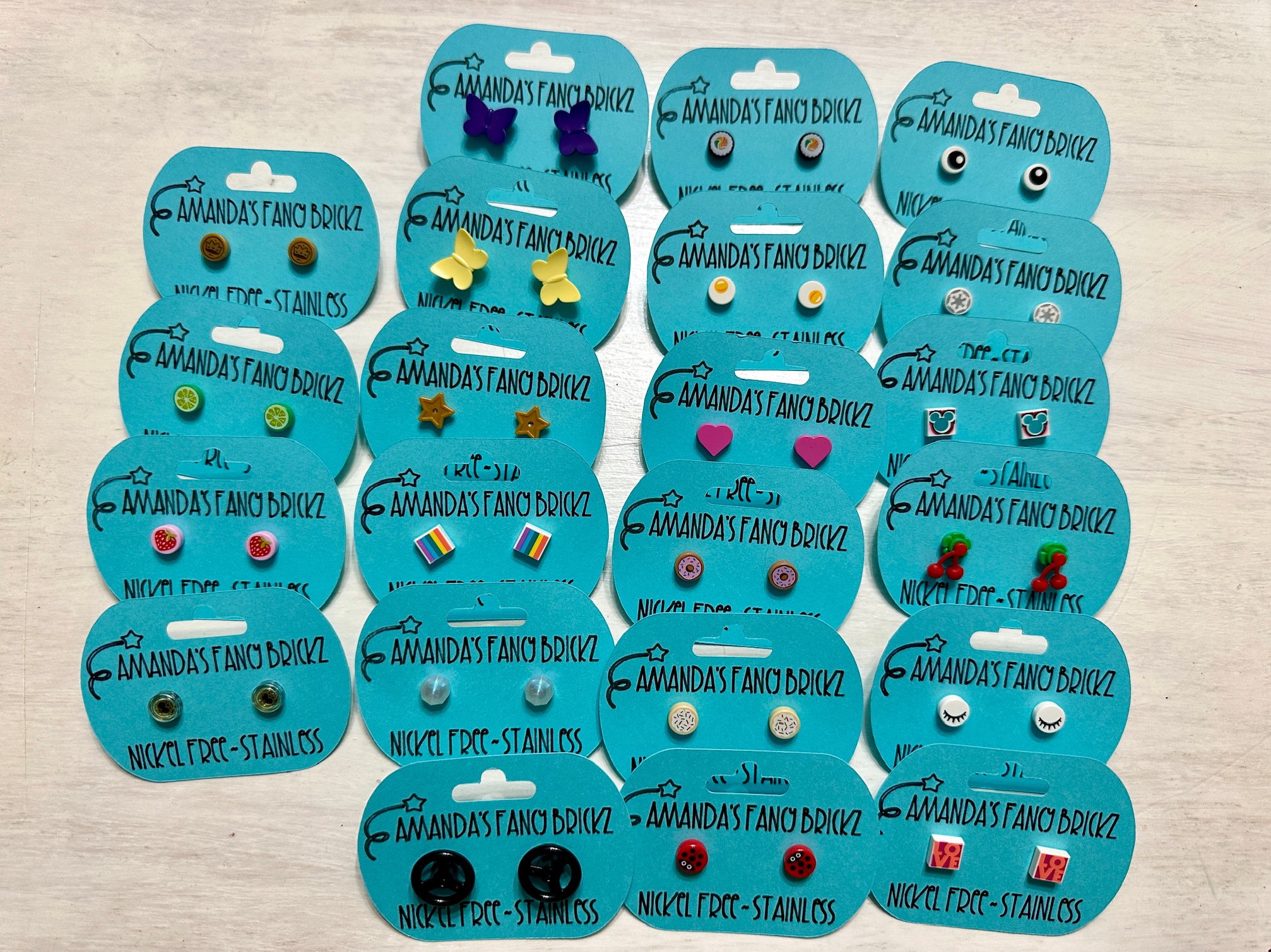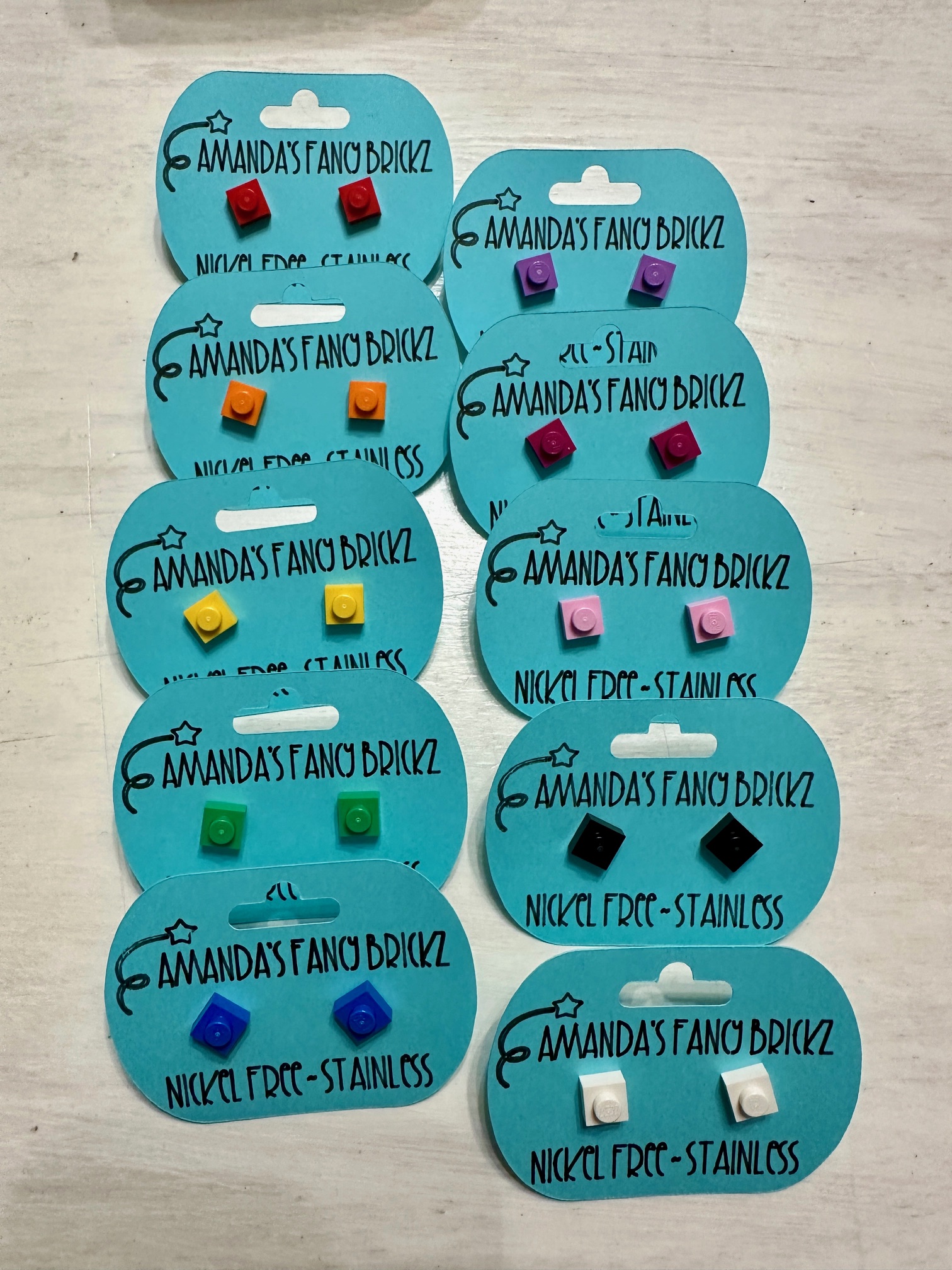 Unique earrings and necklaces – made by local craftsman Amanda’s Fancy Brickz