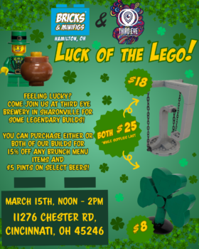 Start your Sunday right at Third Eye™ Brewing! Join us in Sharonville for LEGO®, drinks, and great food! Enjoy a wholesome building activity, brunch deals, and great drinks in a fun event for all ages.