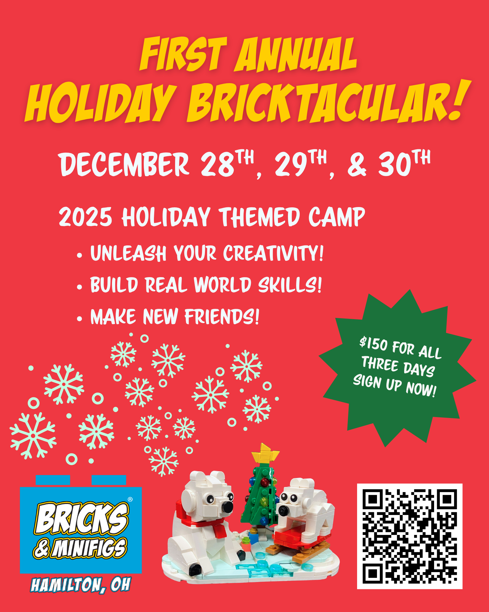 Tis the season! Sign your child up for our winter camp. Our annual Holiday Bricktacular is a fun and imaginative event for kids ages 8–14, hosted by our staff right here in our store, where your kids can make lasting friendships, feed their creativity, and build real world skills! Sign your child up today!