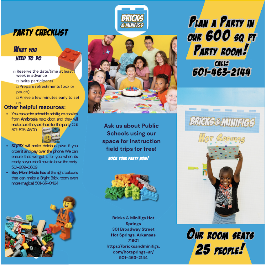 Whether your a visitor to our city or a Hot Springs local, we’re always more than happy to have you at Bricks and Minifigs! We want to build a community for our patrons feel welcome in and are excited to visit. Whether your here to trade in one of your sets, make your own minifig, attending a party, or just want to hang out and help build the community set, there is always something to do at our store!