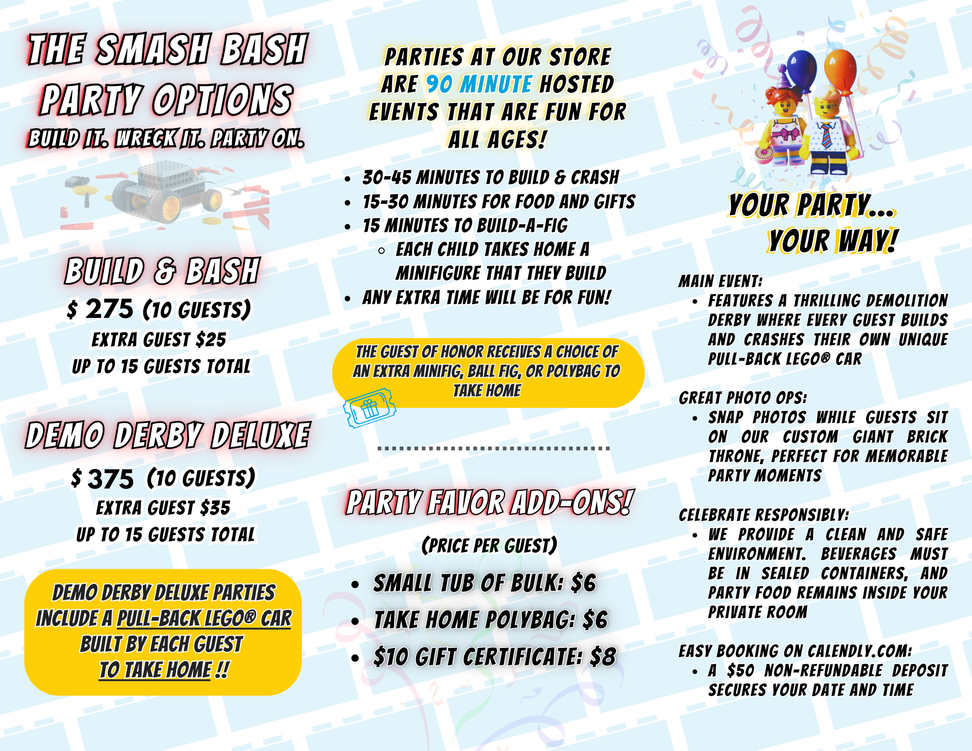 Excited for a new adventure and the chance to build future fond memories? Contact us today to schedule the ultimate LEGO® themed birthday party!