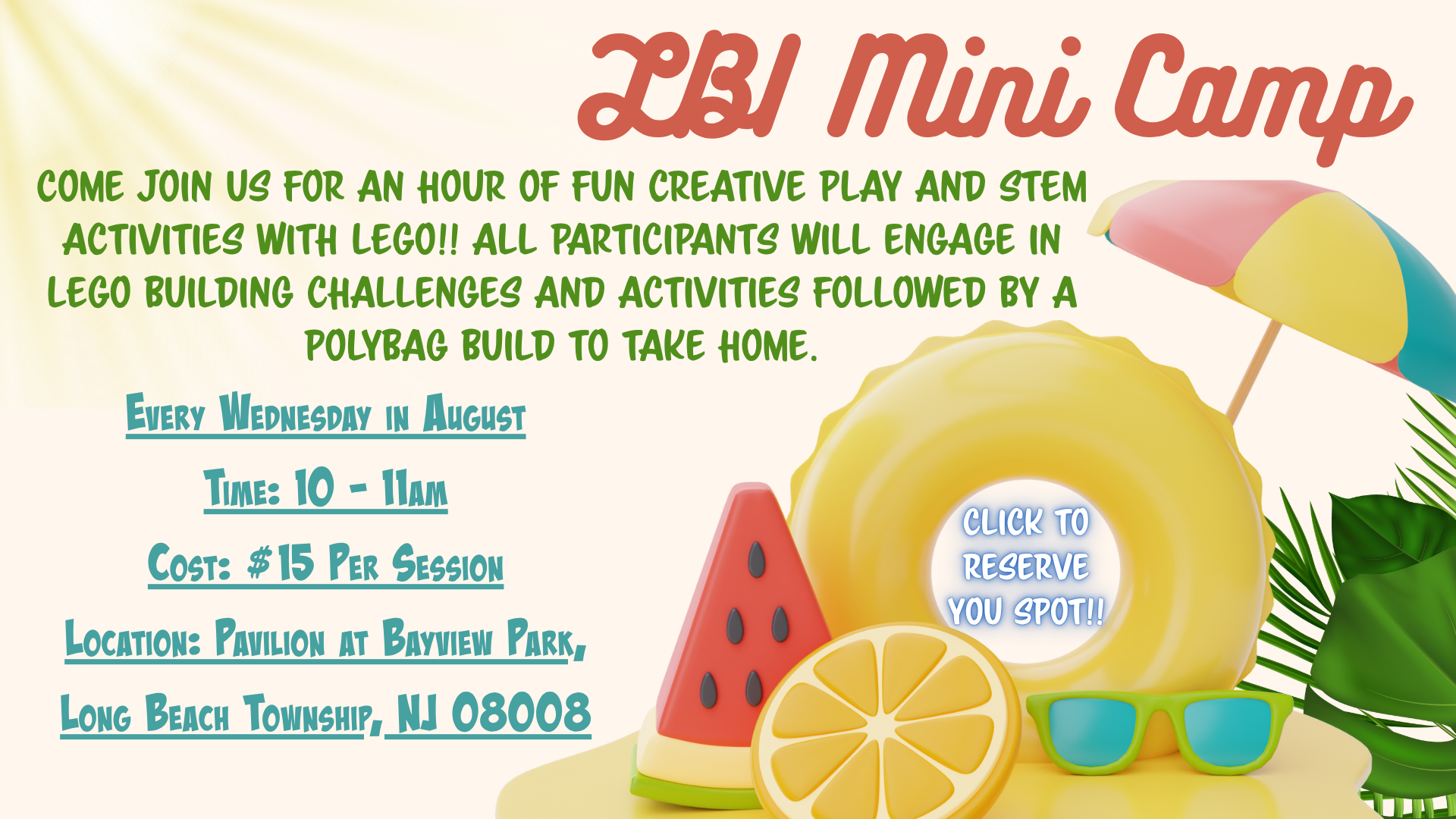- MAXIMUM of 18 participants ($20 each additional participant, this includes any siblings who will be participating)