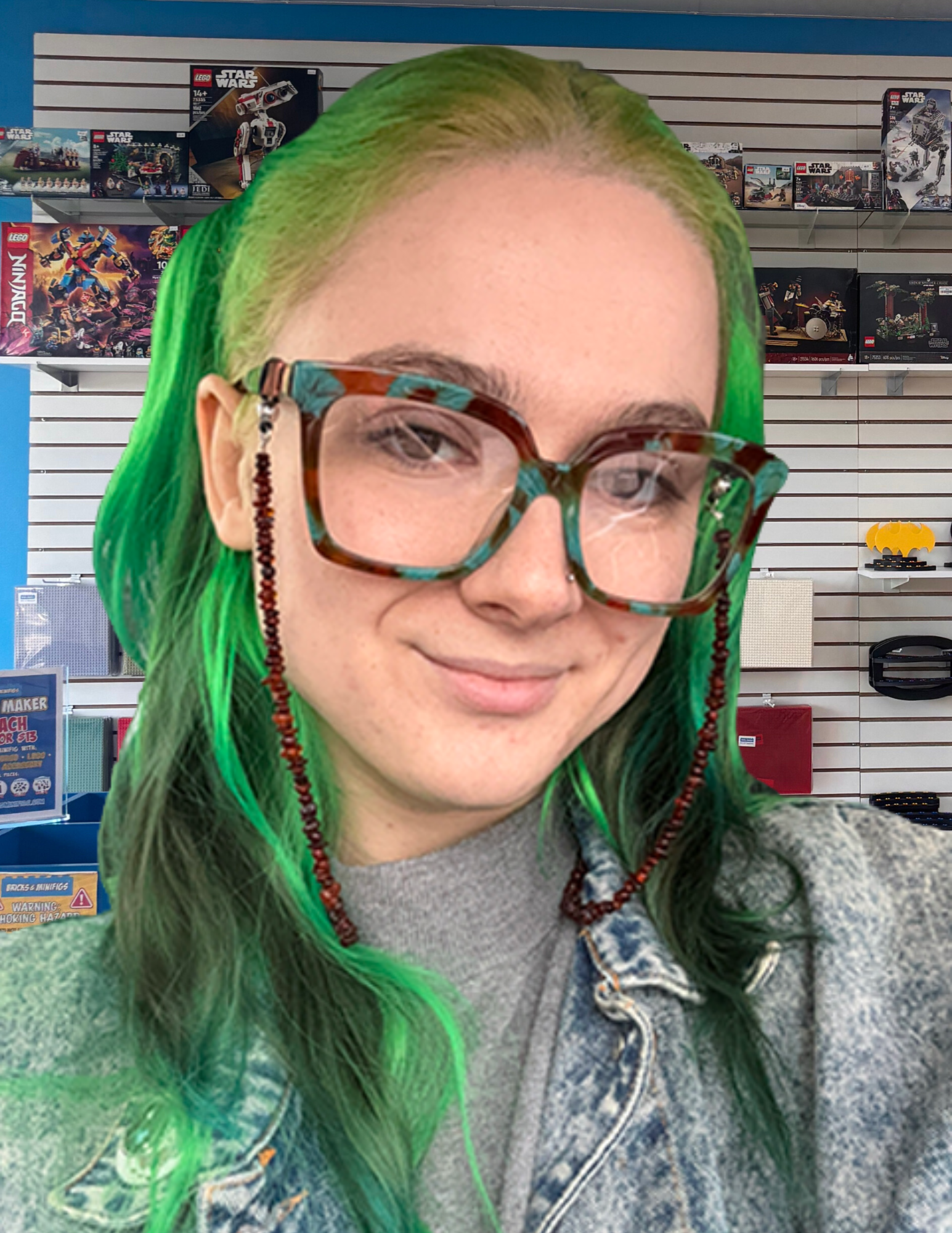 Known for her colorful hair and even greener thumbs when it comes to organizing, Kassidy keeps our inventory in tip-top shape and helps manage daily operations. She’s always ready to help you find that rare piece or put together the perfect custom minifig. Bonus: She’s also a whiz with building sets in record time (our record time that is).
