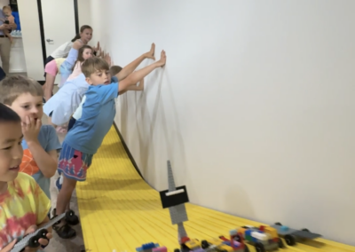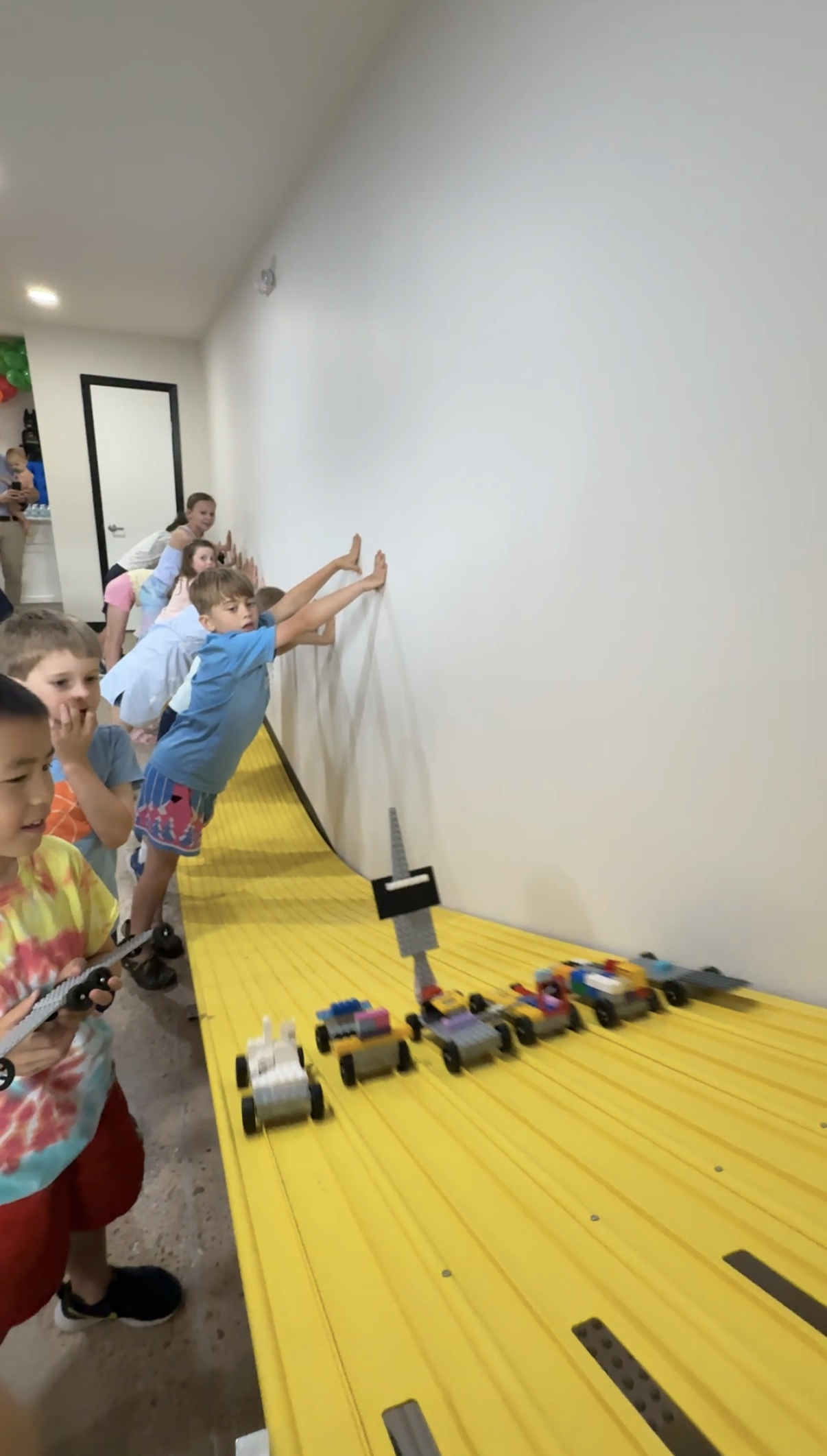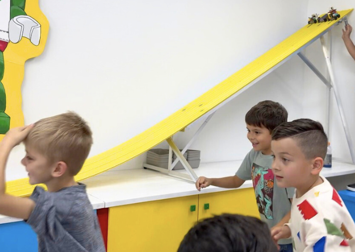 Kids create custom LEGO® race cars and launch them down our custom derby track!
