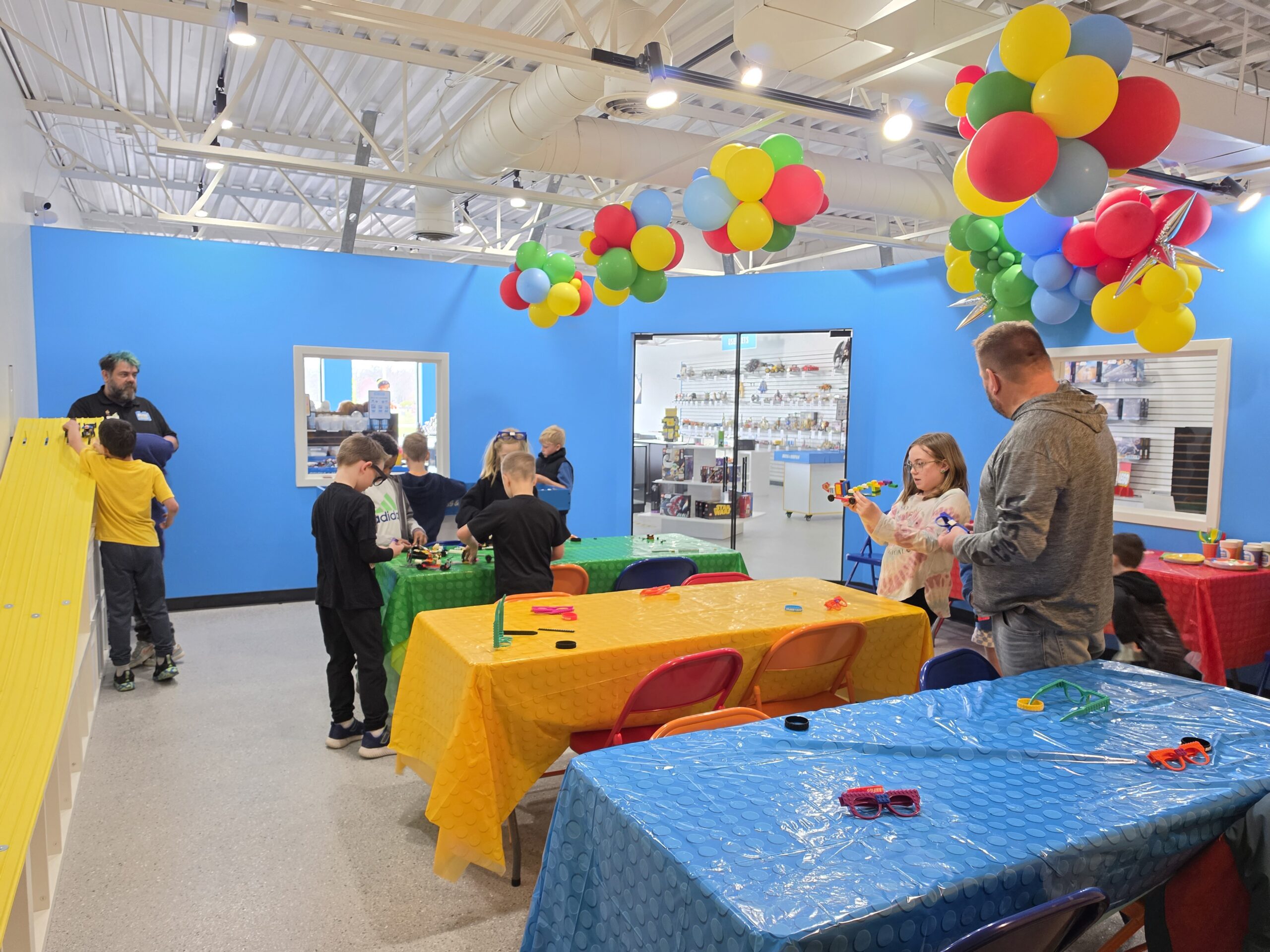 Our party area gives kids room to build, race, celebrate, and enjoy every minute in a bright, colorful environment.