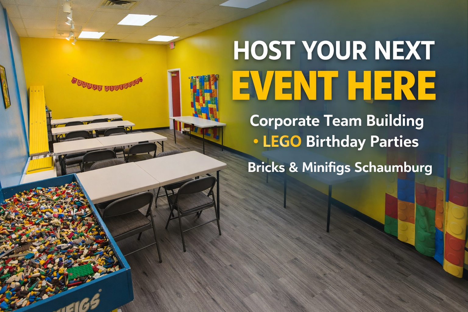 From memorable LEGO® birthday parties to one-of-a-kind corporate team-building events, Bricks & Minifigs Schaumburg is ready to make your next event fun, easy, and unforgettable.