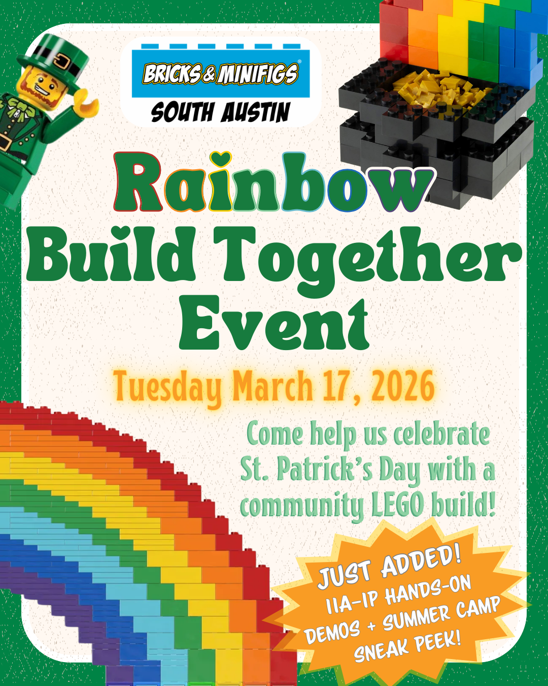 🌈Celebrate St. Patrick’s Day with a fun community build! Join us as we create a LEGO rainbow together and enjoy hands-on building for all ages!