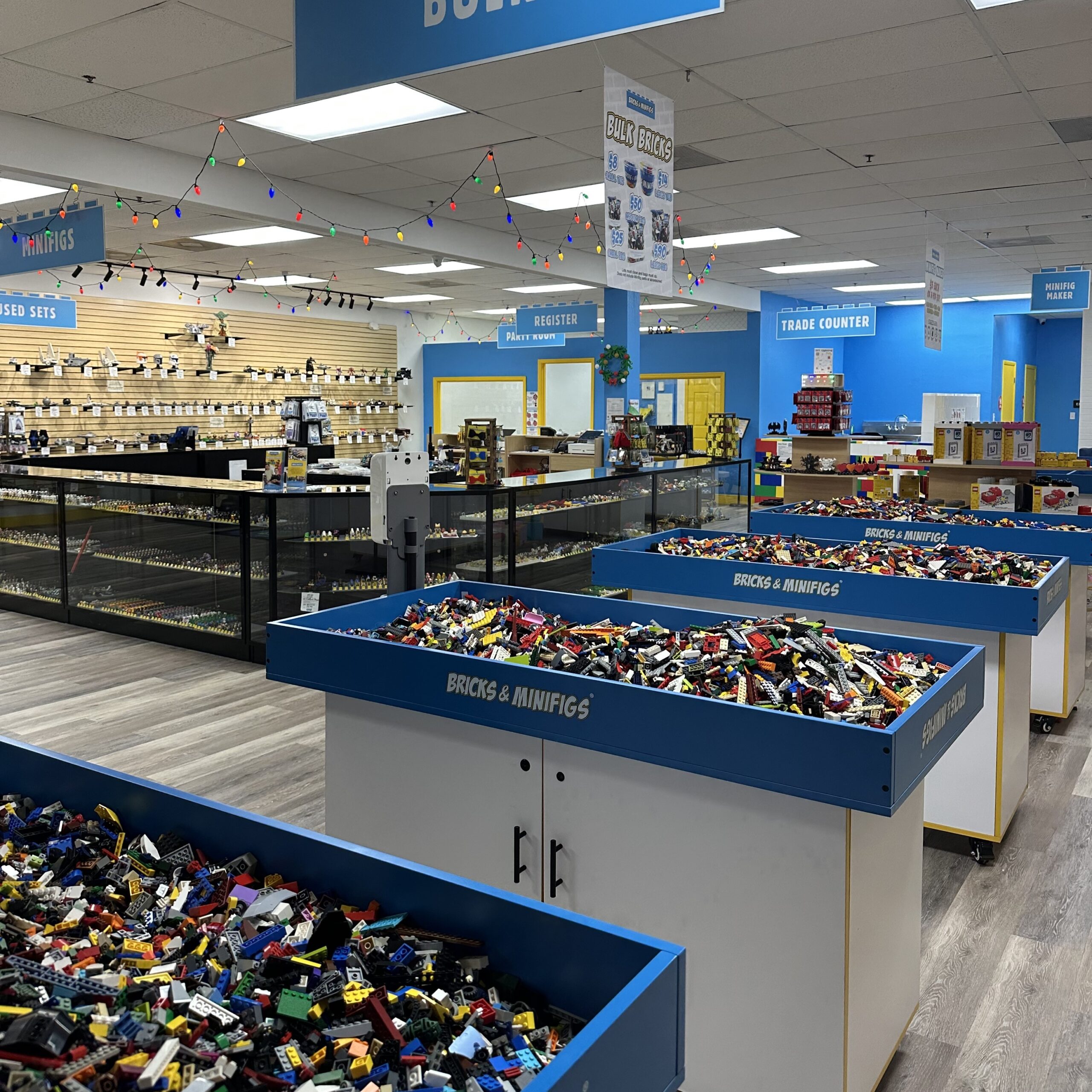 Our motto at Bricks & Minifigs is “rebuild, reuse and reimagine.” That is reflected in everything we do at our stores, including what you will experience as a customer! Come to our stores to find new sets as well as retired LEGOยฎ sets and bulk LEGO pieces. Have LEGO sets or bulk you want to find a new home? Come to BAM(TM) to sell or trade your old collections!