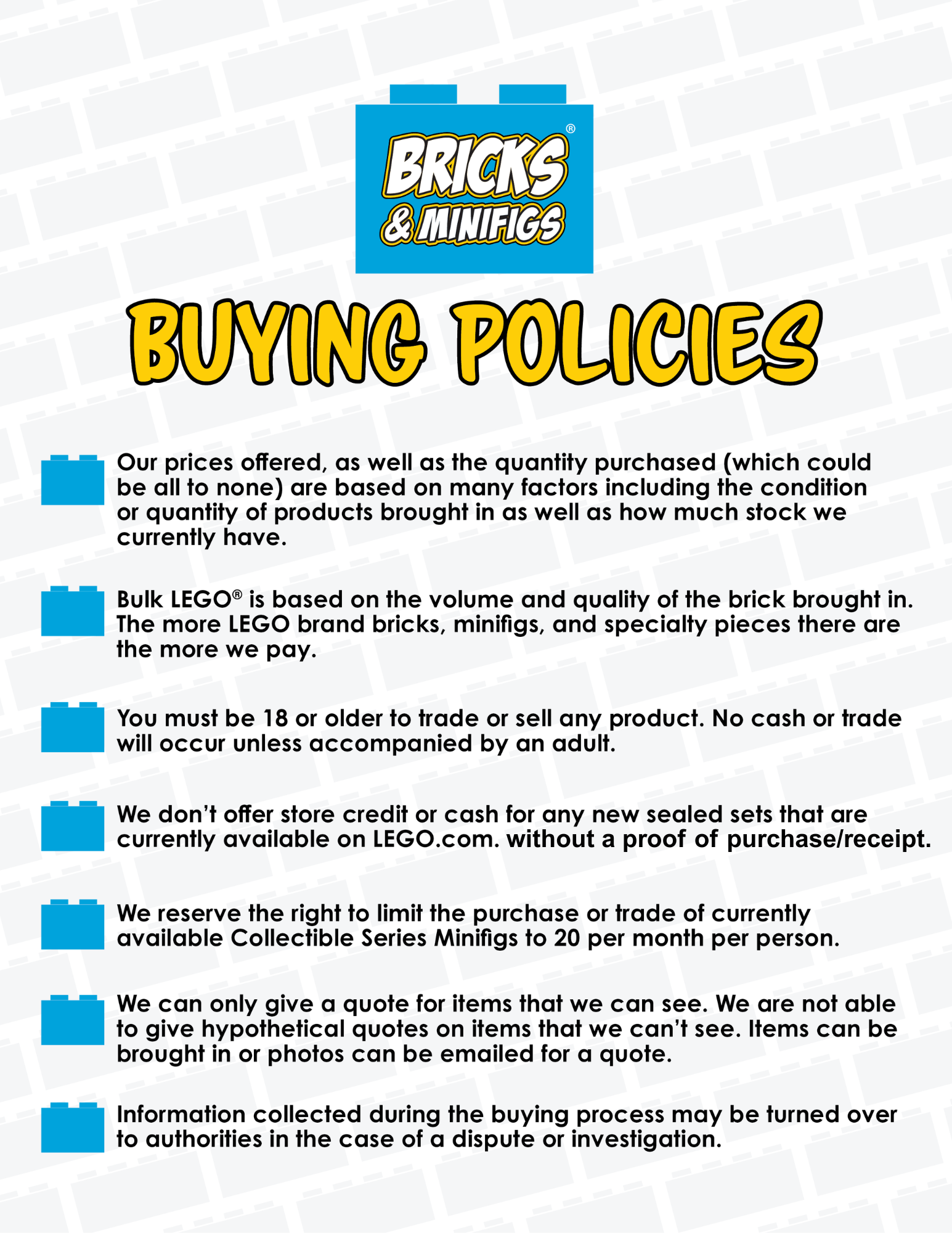 We are your one-of-a-kind toy shop for buying, selling, and trading LEGO® products.