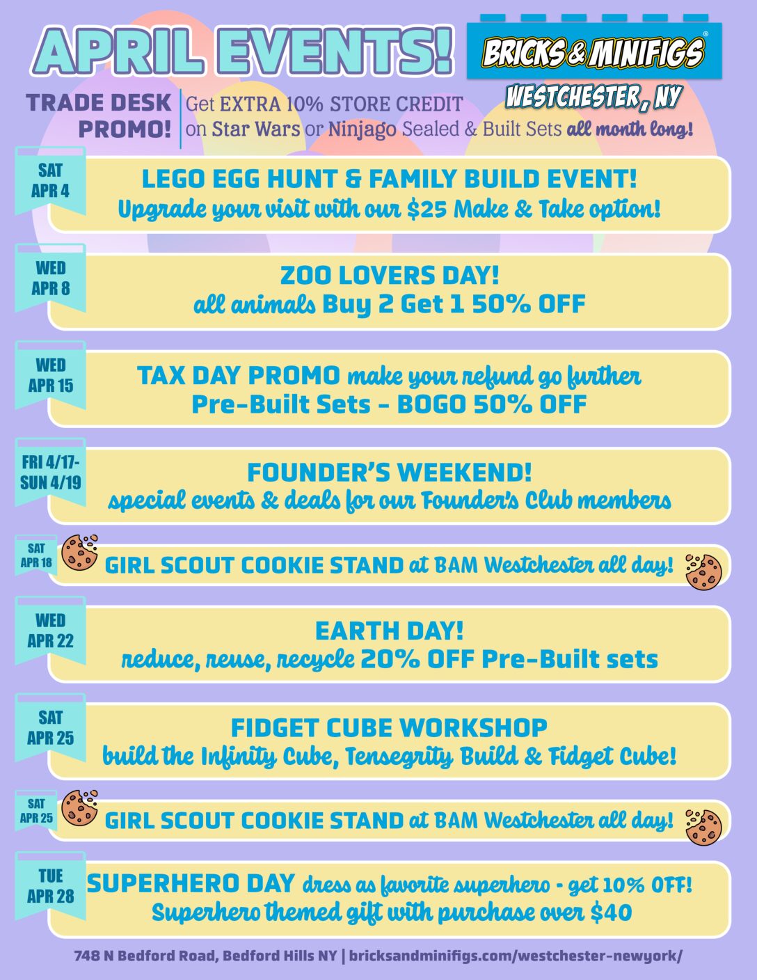 Have you ever dreamed of having an amazing LEGO® themed event? Have you ever needed a place to hold an unforgettable birthday party or smash-hit team building activity? Well you've found it! Book an event at your local Bricks & Minifigs™ today for an expierience you and your evcent guests will be talking about for years to come!